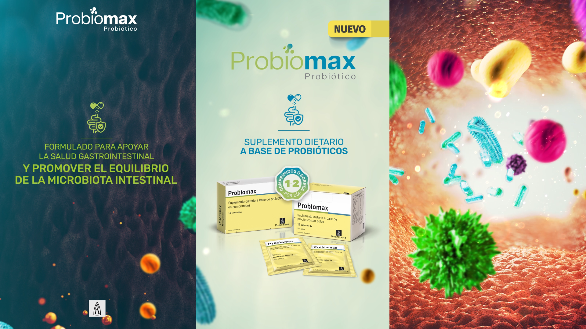 We produced different pieces for a new Roemmers labs product. We created and modelling a colorful universe of particles, bacteria and virus.